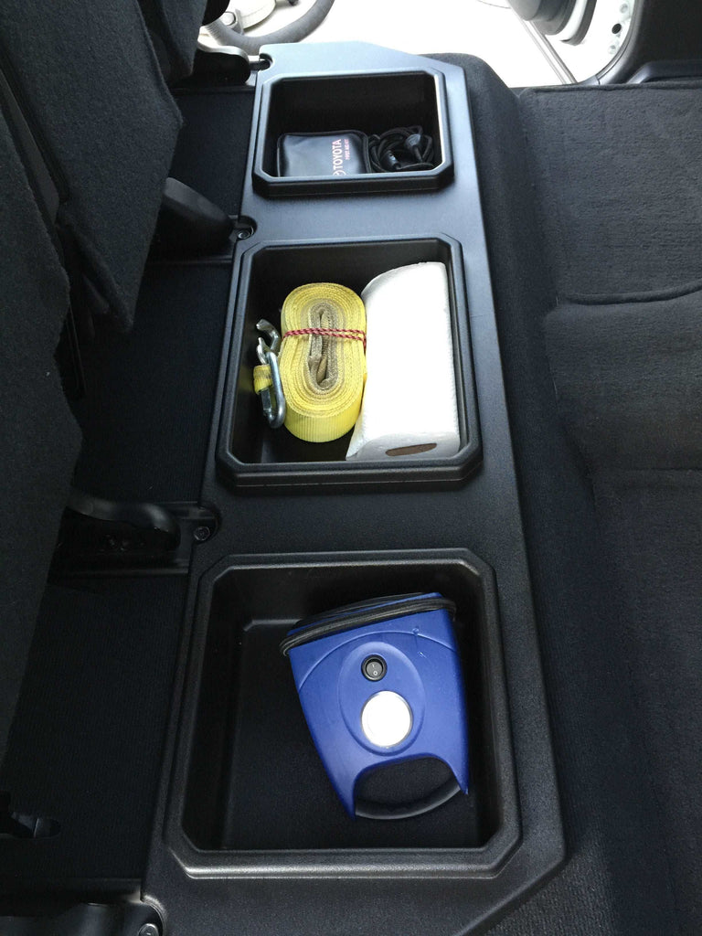 • MORE STORAGE FOR YOUR TRUCK - You'll have more room for all that you need to store in your truck. Each of the compartments in this truck organizer measures 4 14 deep and the back seat folds over acting as a lid with no interior noise. Installation is quick and this truck organization accessory sits firmly in place surrounded with the existing foam.